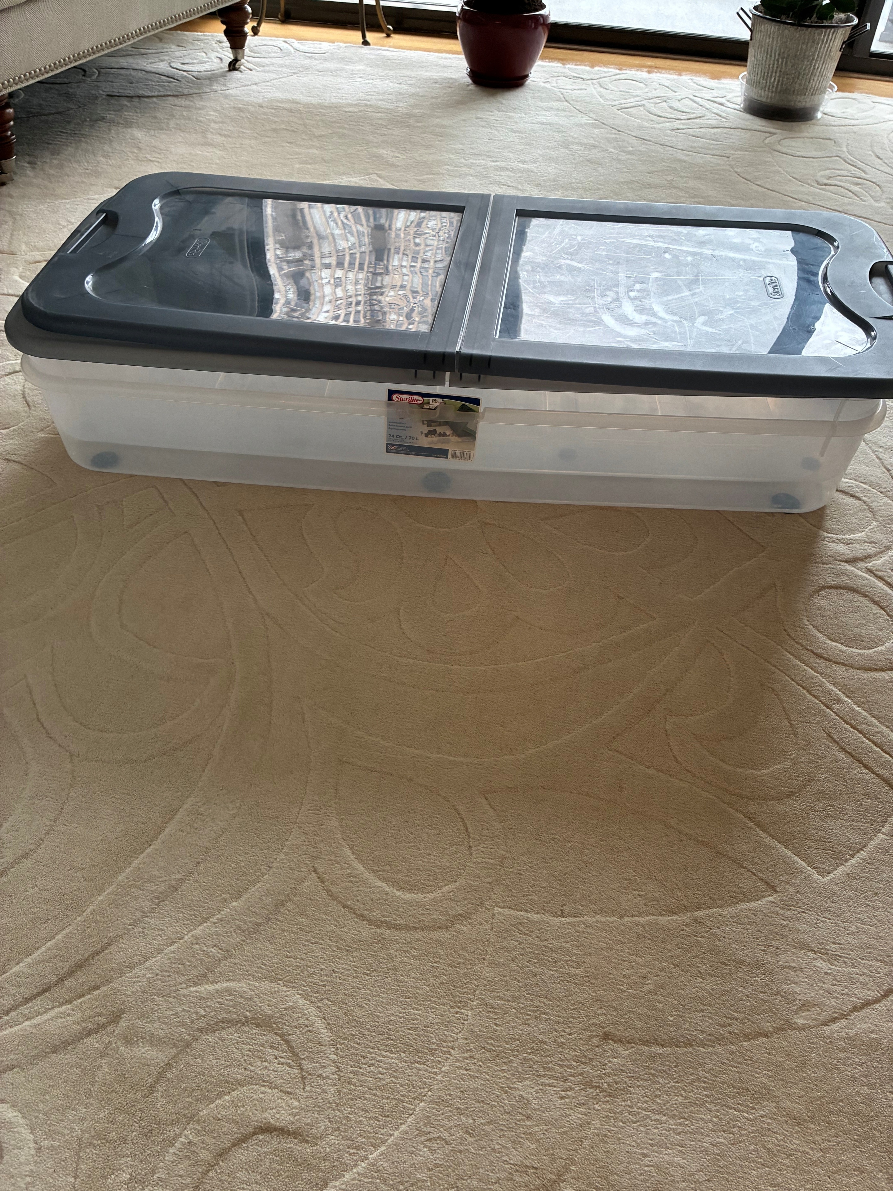 Free: 2 plastic storage bins 43"Lx18.5"Wx7"D